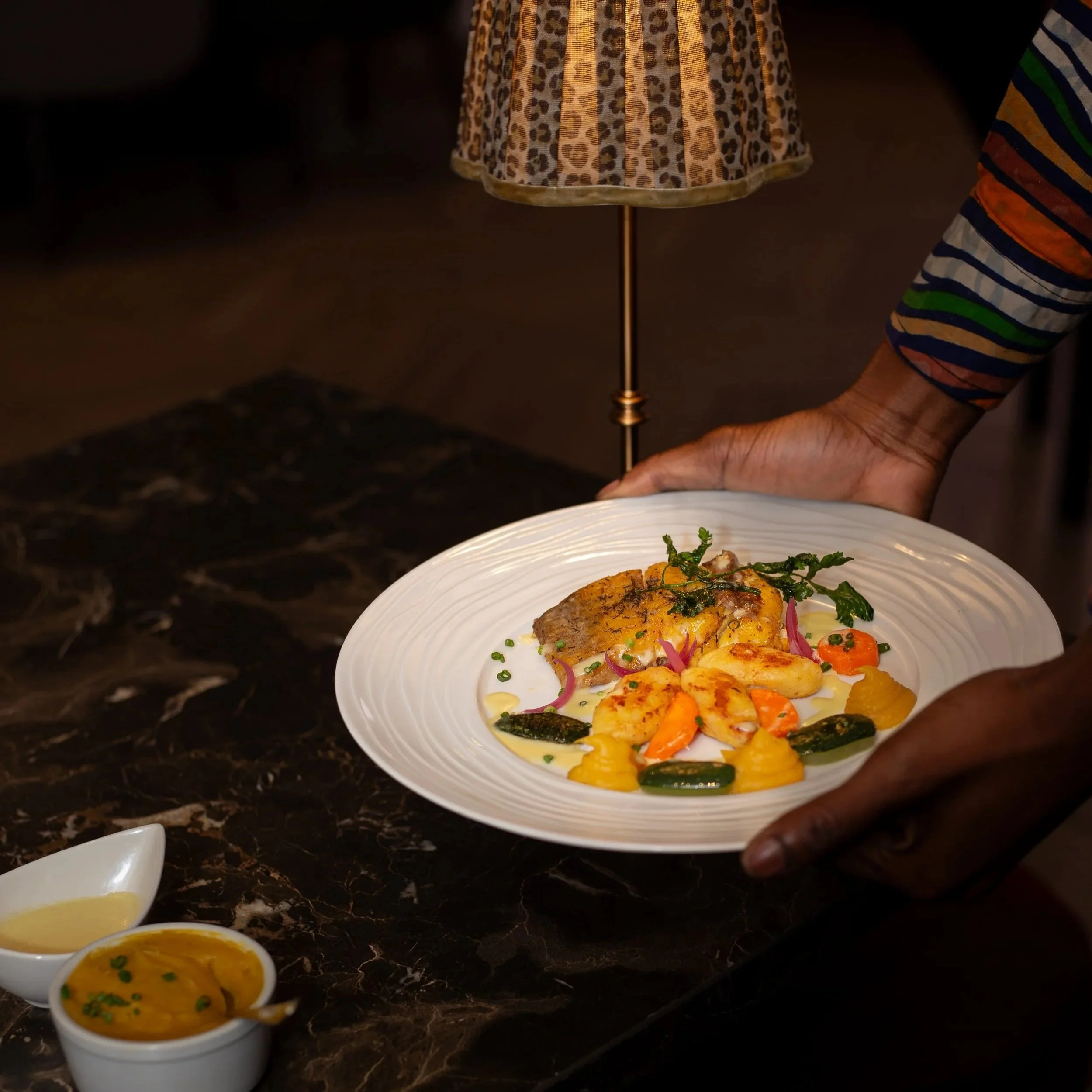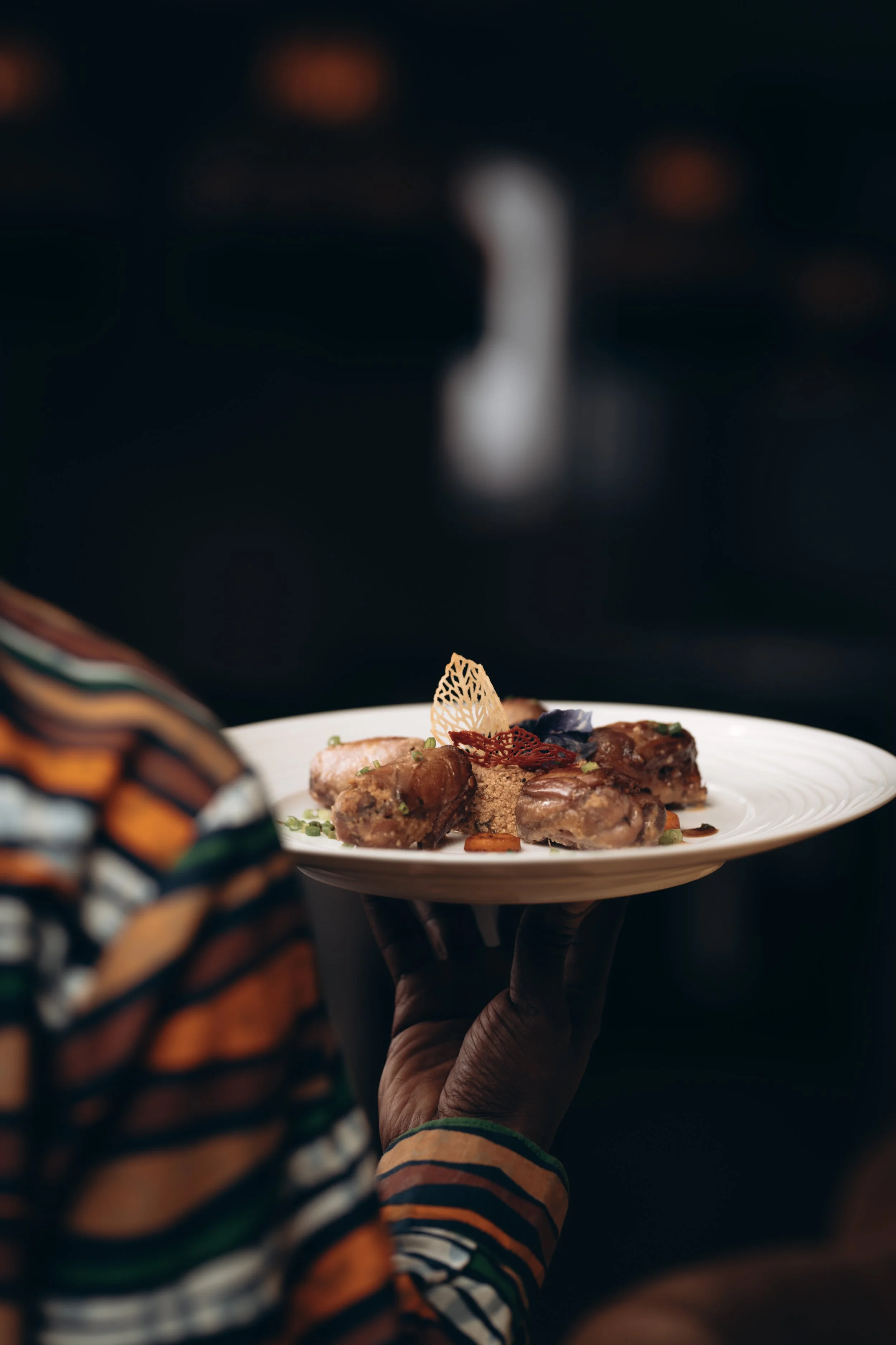 Gastronomie afro-fusion moderne, inspirée du patrimoine congolais et exécutée avec finesse.